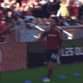 Diego Luna celebrates a goal with an energetic fist pump in his Real Salt Lake soccer jersey.