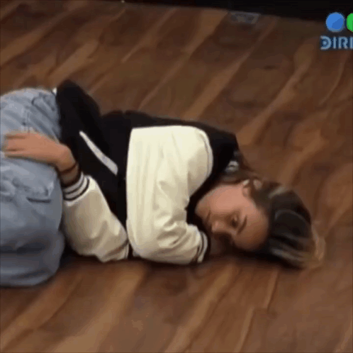 Flor Regidor from Gran Hermano lies sadly on the floor, appearing distressed and heartbroken.