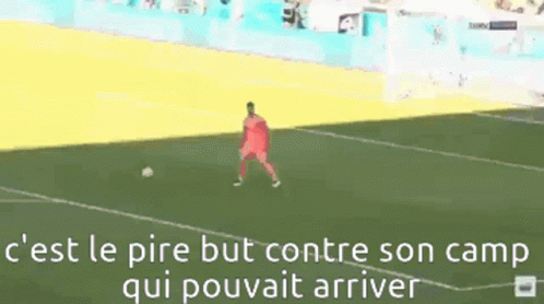 A football goalkeeper scores a disastrous own goal, highlighted by the caption "it's the worst own goal that could happen".