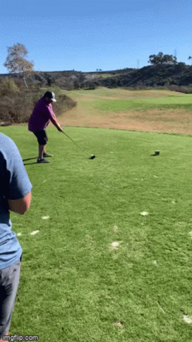 Nastynate, also known as Nate Sposato, takes a powerful golf swing on the course, shouting 'Fore!'
