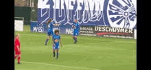 Marie Minnaert and Lenie Onzia celebrating on a soccer field during a Friday Night match.