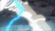 Izuku Midoriya unleashes One For All Full Cowling at 100% power, surrounded by intense blue lightning.