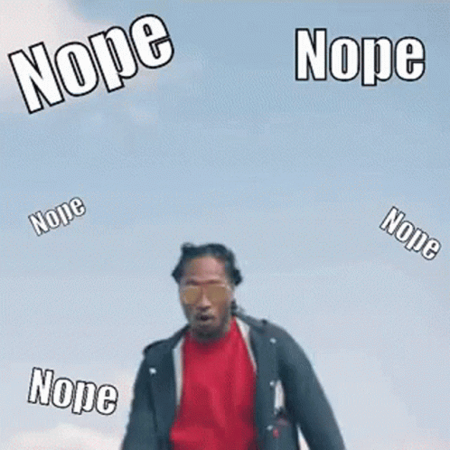 Rapper Future dances in front of a blue sky, surrounded by the iconic 'Nope' meme text.