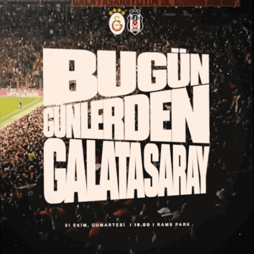 A vibrant poster for the Galatasaray vs Beşiktaş derbi match at Rams Park, featuring the slogan 'Today is Galatasaray's Day'.