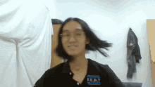 Edwin Gan, a man with long hair and glasses, smiles while shaking his head.