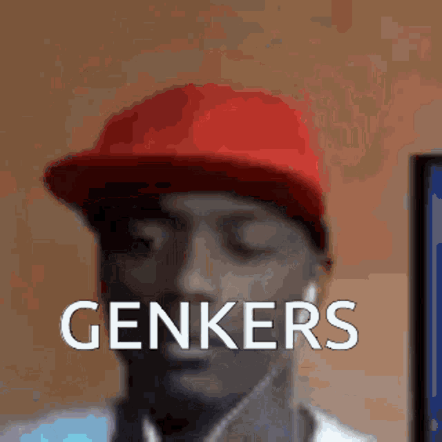 A man wearing a red hat and earbuds looks at the camera as the word "GENKERS" appears on screen.