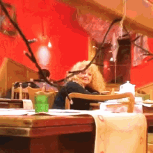 Magda Gessler, the Polish TV personality, is seen smiling while seated at a restaurant table.