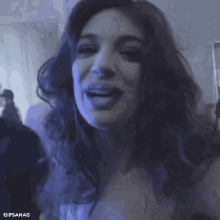 Anaguerra smiles and laughs at the camera in a lively indoor setting.
