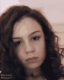 Carolbiazin looks directly at the camera with a serious expression, featuring her nose piercing and dark, curly hair.