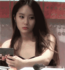 Krystal makes playful expressions, including sticking out her tongue, while looking at her phone.
