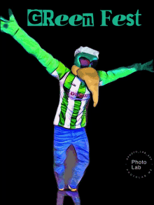 A vibrant poster for "Green Fest Lorito Pasion" featuring a stylized figure in a green and white jersey.