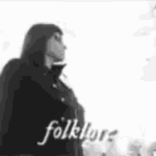 Gretchen in a black and white clip, looking around with 'folklore' text overlaid, a popular meme.