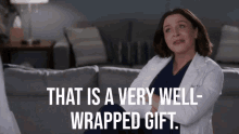 Amelia Shepherd comments on a very well-wrapped gift in a scene from Grey's Anatomy.