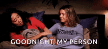 Cristina Yang and Meredith Grey share a tender moment in bed, with the iconic phrase 'Goodnight, My Person' displayed.