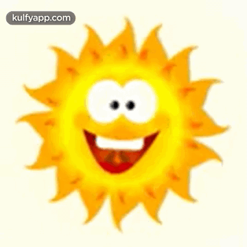 A cheerful cartoon sun with a big smile waves hello, spreading good vibes.