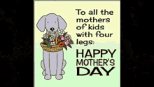 A heartwarming Mother's Day greeting card featuring a cartoon dog holding flowers, dedicated to mothers of four-legged kids.