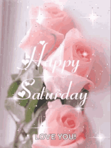 A beautiful display of sparkling pink roses, conveying a warm 'Happy Saturday' message with love.