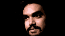 Sparsh with a beard and mustache, giving a sarcastic smile in a dark setting.
