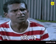 Hasan Masood from Bachelor Movie, wearing a striped shirt, makes a funny face and asks 'Is it done?'