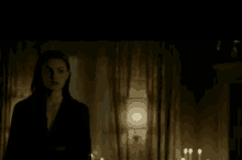 Hayley and Elijah share an intense, emotional moment in a dimly lit room filled with candles and a lamp.