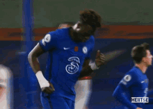 Chelsea FC players, including Tammy Abraham, celebrate a goal during a soccer match.