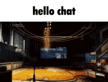 A scene from the video game Prey, featuring the text 'hello chat' in a dark, industrial setting.