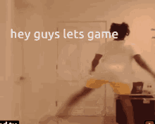 IShowSpeed performs his iconic 'Hey Guys Lets Game' dance, energetically jumping in a room.