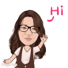 A friendly cartoon woman with glasses waves 'Hi' to the viewer.