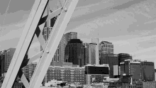 Black and white cityscape featuring Nashville's iconic AT&T Building, associated with country music star Alan Jackson.