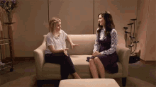 Kristen Bell and D'Arcy Carden from The Good Place share a high five moment on a couch.