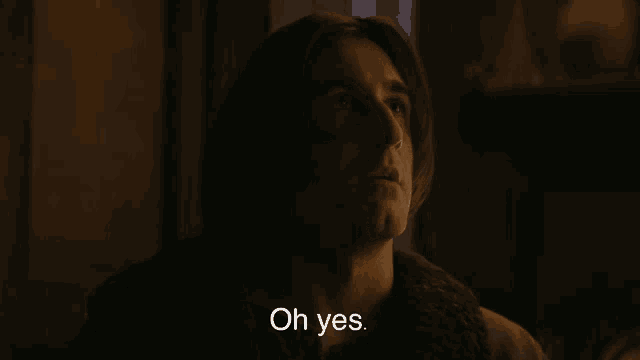 Hob Gadling, portrayed by Ferdinand Kingsley, says 'Oh yes' in a dark room.