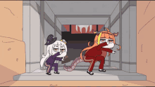 Murasaki Shion and Kiryu Coco from Hololive perform a synchronized dance routine in chibi style.