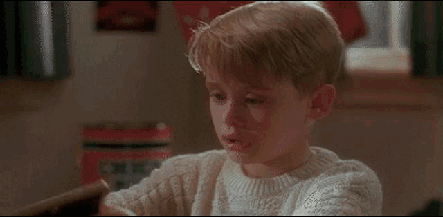 Kevin McCallister from Home Alone reacts with disgust to a picture of Michael Jackson.