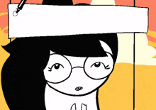 Homestuck's Jade Harley writes 'Legalized nuclear bombs' on a sign, advocating for a controversial policy with a deadpan expression.