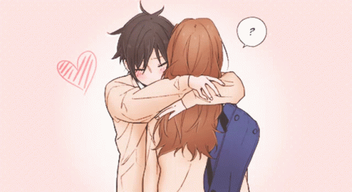 Izumi Miyamura and Hori Kyoko from Horimiya, a cute anime couple sharing a sweet hug.