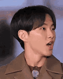 Hoshi from K-pop group Seventeen shows a surprised reaction with his mouth open.