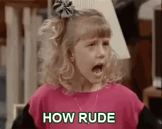 Stephanie Tanner from Full House makes a funny face and says 'How Rude' in this iconic moment.