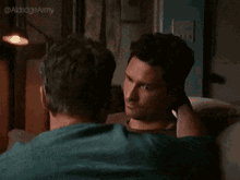 Ben Aldridge and Declan Bennett share a warm bear hug in a living room setting.