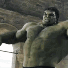 The powerful green character, Hulk, lets out an intense roar, embodying his iconic "Hulk Smash" phrase.