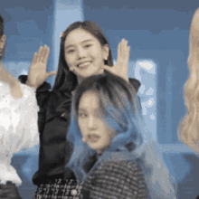 Choi Hyojung smiles brightly and makes a heart gesture during a lively performance with her group.