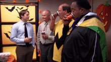 Pete Miller and Creed Bratton discuss Halloween costumes at Dunder Mifflin, leading to Creed's perfectly timed realization.