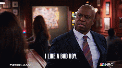 Captain Raymond Holt from Brooklyn Nine-Nine declares, "I like a bad boy," with a serious expression.