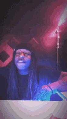 Teejay, a man with dreadlocks and a black beanie, makes a 'don't know' shrug gesture.