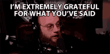 Tigerwriter, wearing headphones, expresses extreme gratitude while speaking into a microphone.
