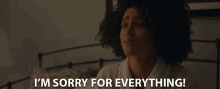 Nathalie Emmanuel delivers a heartfelt apology, saying 'I'm sorry for everything!' while sitting on a bed.