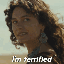 Melodi, portrayed by Stephanie Nur, expresses fear with the caption 'I'm terrified' in a scene from 1883.
