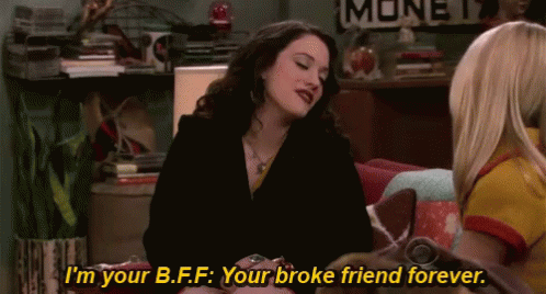 Max Black (Kat Dennings) humorously declares herself a 'broke friend forever' to another woman.