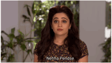 Nehha Pendse, an Indian actress, looks innocent and thoughtful in a floral shirt.
