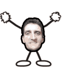 Isitetrake, a stick figure with a real man's head, animatedly moves its arms on a white background.
