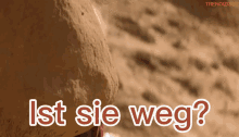 German text "Ist sie weg?" displayed over a rocky landscape, referencing Sigourney Weaver.